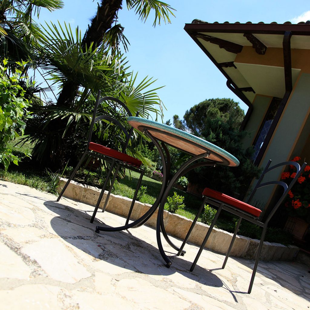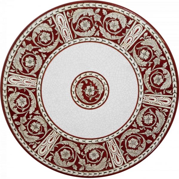 - Materiale: ceramica di Deruta dipinta a mano su un biscotto di pietra vulcanica delle cave di Soriano del Cimino (VT).