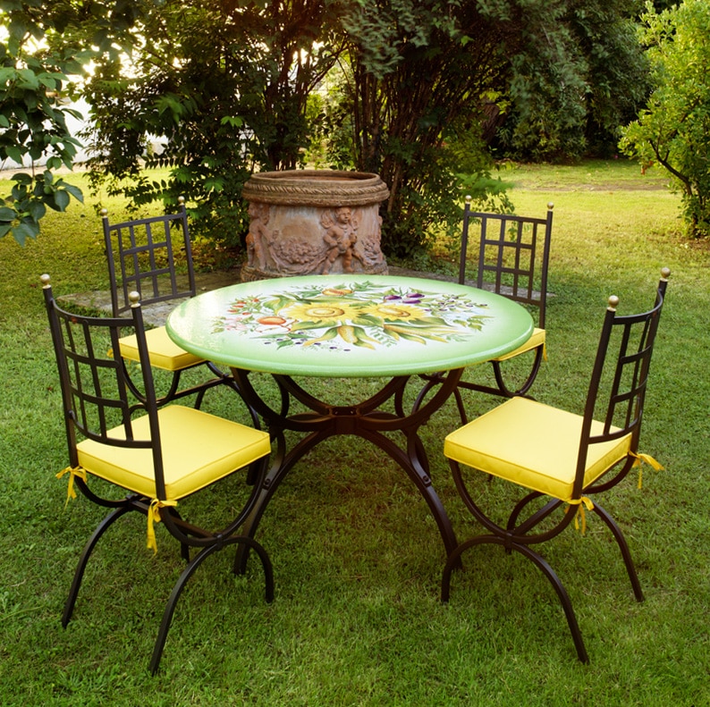 Abbiamo comperato un bel tavolo da giardino decorato con 4 sedie,Siamo molto soddisfatti della qualità davvero eccellente della decorazione e per la stabilità dei materiali della base e delle sedie.tutto è arrivato regolarmente nei tempi (appena riaperto dopo lockdown) e il tavolo è stato montato velocemente dai trasportatori.