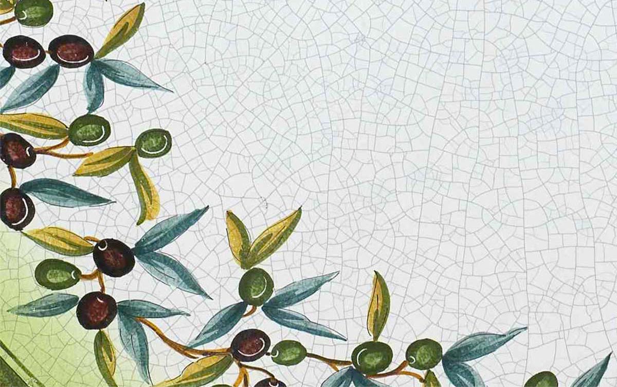 La raffinatezza e l’eleganza dominano in questo decoro di rametti di olivo tutto sfumature e colori delicati.